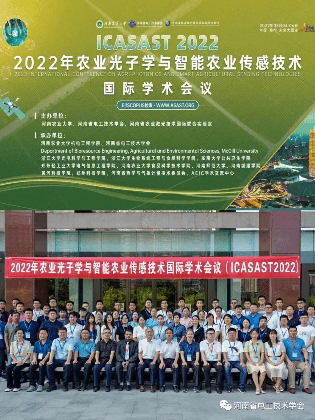 (通讯员程珍珍)2022年8月4-6日,由河南农业大学、河南省电工技术学会、河南省农业激光技术国际联合实验室主办,2138cn太阳集团参与承办的2022年农业光子学与智能农业传感技术国际学术会议(ICASAST 2022)在郑州成功召开。2138cn太阳集团研究中心副主任何国锋博士、程珍珍博士及魏柯老师,与6名三峡大学联合培养硕士生参加了本次会议。