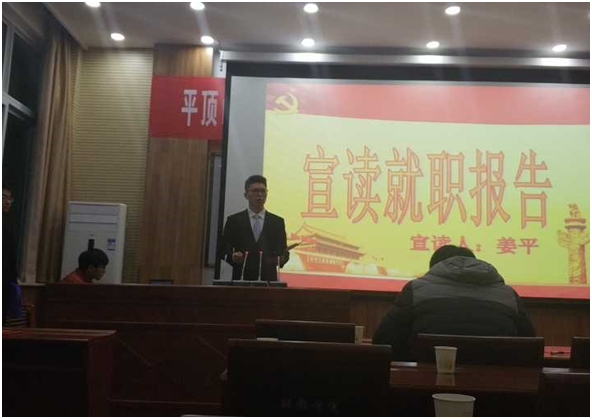 (图为电气学院第九届主席姜平发表就职报告)