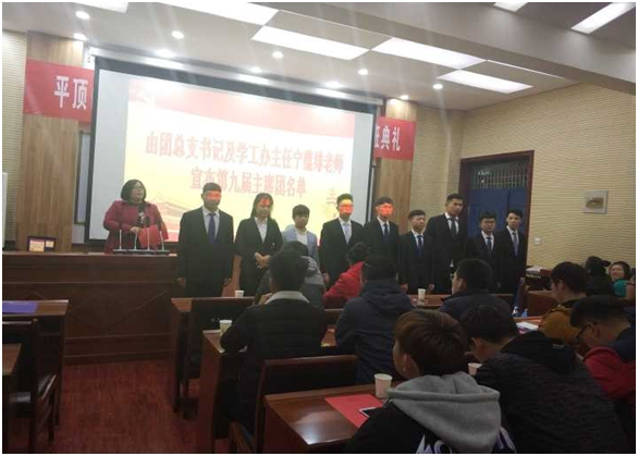 (通讯员 王丹阳 崔知栩)2017年12月10日下午18:00,2138cn太阳集团在二号楼A307教室举办了第九届学生会主席团换届大会,学院党总支副书记董燕飞老师、团总支及学工办主任宁蕴绯老师、辅导员赵昊老师、兄弟院系的主席及全体学生会干事出席了此次大会。